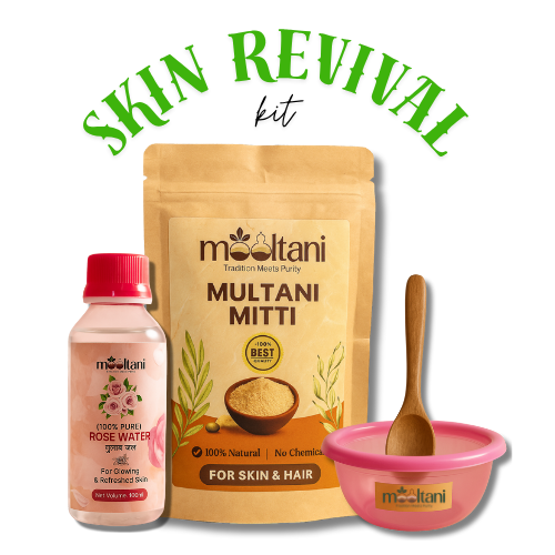 Restore your skin’s natural beauty with the Mooltani Skin Revival Kit — a thoughtfully curated, all-natural skincare combo designed to detoxify, rejuvenate, and refresh your skin using the ancient wisdom of Ayurveda blended with modern simplicity.